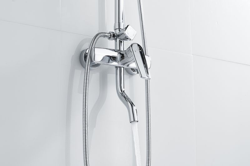 •方型分水手轮,顶喷水、花洒水、下出水切换自如。