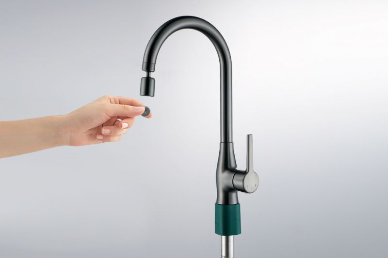 2、龙头出水口采用两功能起泡器,可以翻转切换不同水花,冲洗杂质。